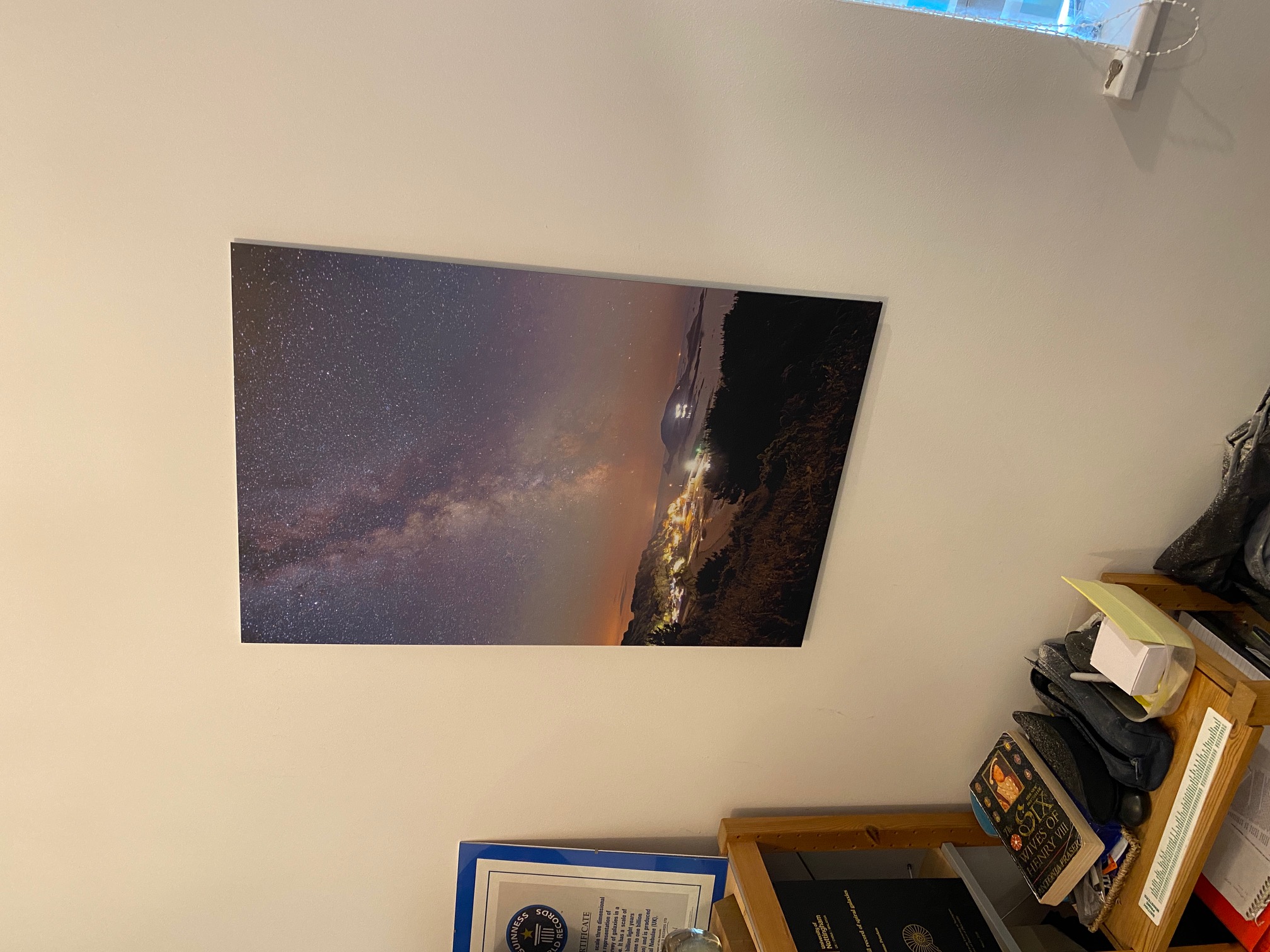 Due to manufacturer’s incompetence, I have a spare copy of this picture I took, printed on aluminium, with one slightly bent corner (they sent a replacement, and said I could do what I liked with the first one). Would anyone like it?