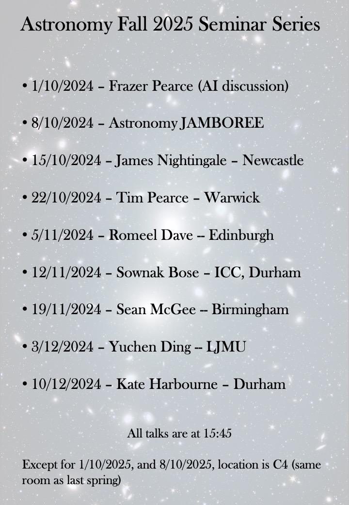 [Astro] [CAPT] Astronomy Seminars Fall 2025 Series