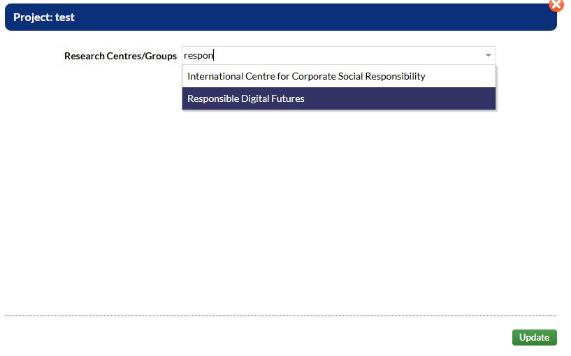 We are keen to add a new group to the dropdown list in RIS (research centres/groups) so that projects involving members can be tagged as associated to it. The group has been approved today by our Computer Science Research Committee. The name of the group is ‘Responsible Digital Futures’. If you need more detail, or additional approval, do let me know.