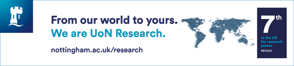 [Aerial-view illustration the world map, made up of lots of little people. Text overlay reads: From our world to yours. We are UoN Research. 7th in the UK for research power* (REF2021) nottingham.ac.uk/research *According to analysis by Times Higher Education]<https://www.nottingham.ac.uk/research/research.aspx?utm_source=email_sig&utm_medium=email&utm_campaign=ref2021&utm_content=v3>