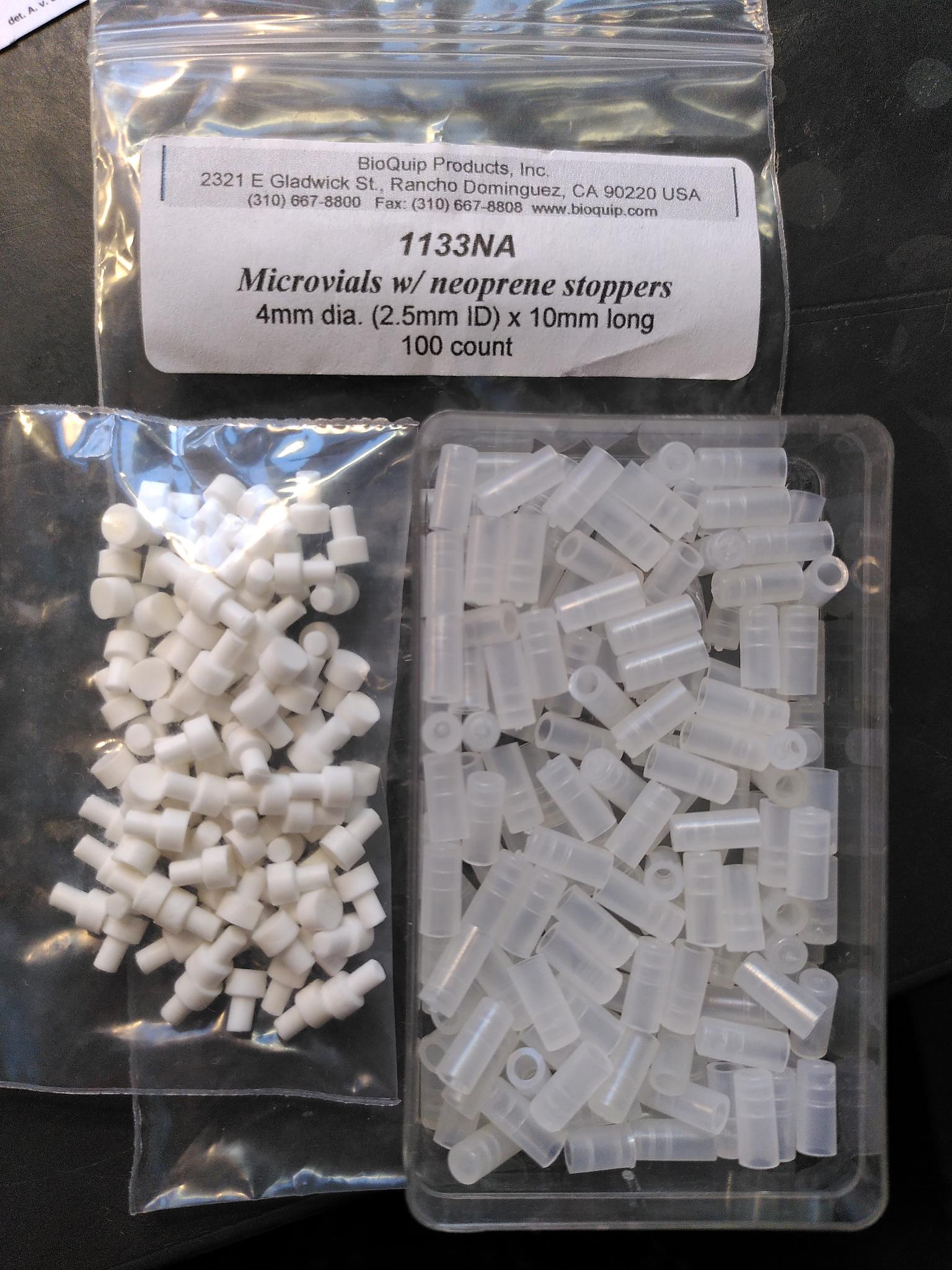 photo), also called Polyethylene genitalia vials, with stoppers.
